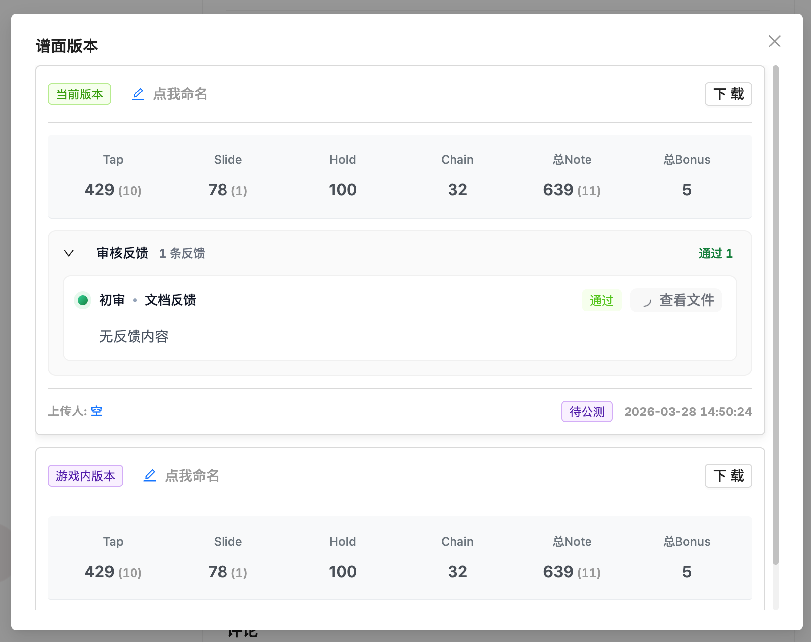 3. 你可以下载任意版本的谱面(无论状态)