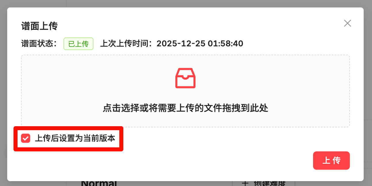 处于已下架状态的谱面在提交新版本时会自动转为待审核版本并打上标签,后续审核流程与正常谱面一致,你也可以选择在此时退出审核进行存档